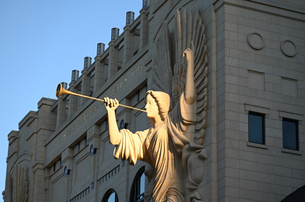 New-to-me locales are my usual preference when it comes to photo walks, but there are decided advantages to hitting certain places over and over, provided they are photogenic enough to merit it. Case in point: the photo at the top of this post. When I drove by the Bass Performance Hall around 4:30pm, the famous angels were in complete shadow. This is downtown after all, and despite the fact that sunset was a little over an hour in the future, the long shadows were already cast. I knew from my summer shooting, however, that the shadows move as the sun sends its rays out into the solar system, creating shafts of light that find their way in between some of the buildings. It changes drastically over the course of a few minutes, so I made a point to walk over to check on things after about 30-40 minutes over by the courthouse and the river behind it and lo and behold, there it was! The angels and their trumpets blaring with a solar spotlight highlighting their magnificence.
