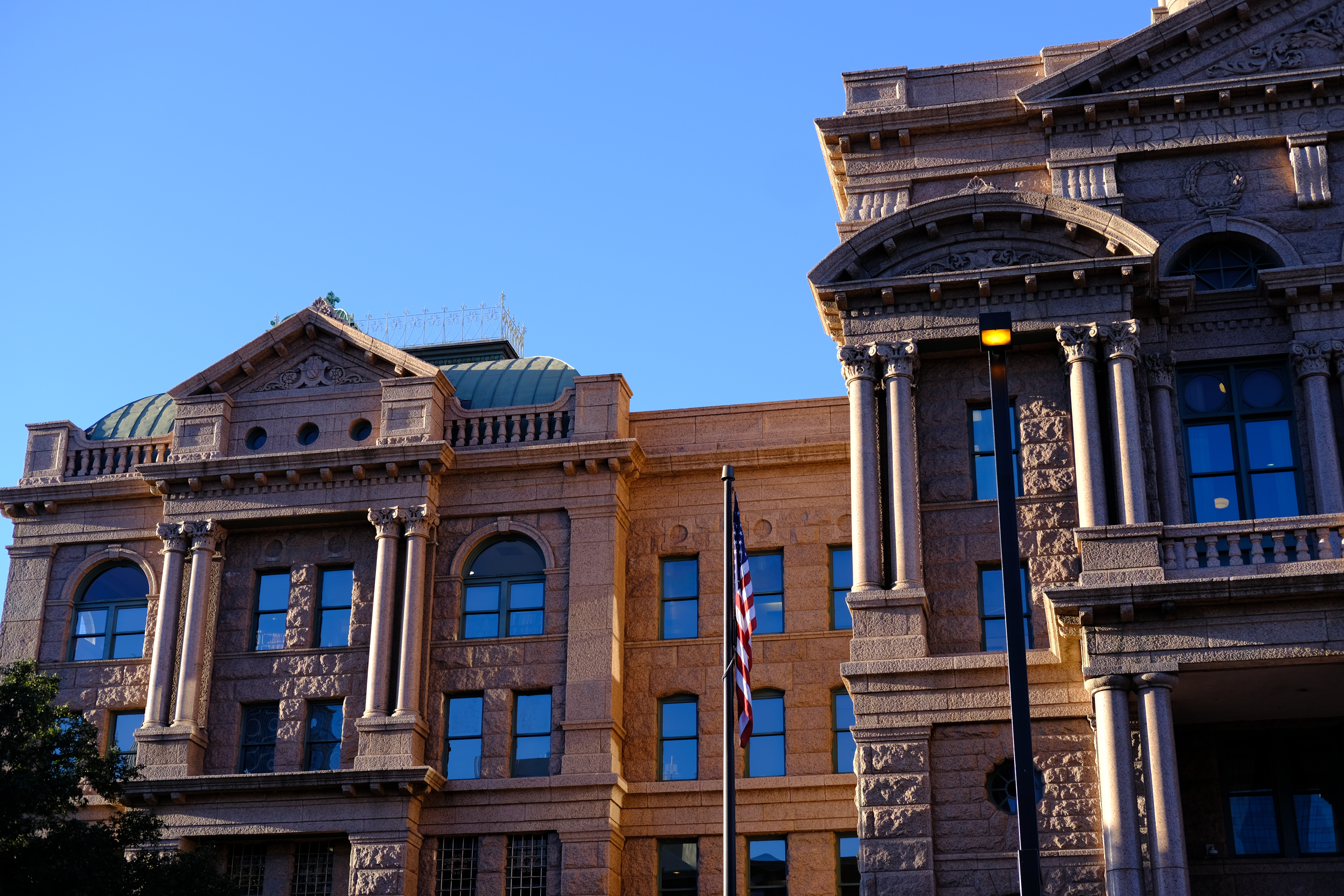 Downtown Fort Worth is pretty perfect for a late afternoon photo walk. I’ve done quite a few over the years, often (but not always) testing or comparing different cameras or lenses. A few days ago, for instance, as the media spent the entire week boosting their ratings by scaring us all into believing that life as we know it was once again about to cease due to an impending weather disaster, it was 70 degrees here, deep blue skies, crystal clear and windless. A better day for meandering around the stately courthouse, the serene Trinity River along whose banks the original Camp Worth was located, and the outskirts of Sundance Square with a couple of cameras dangling from one’s body simply could not be asked for. This was an afternoon for shooting some of my tried and true favorites illuminated by the setting western sun, shadows and sidelight in full effect.
